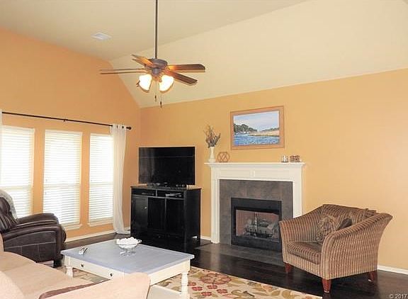 Beautiful home features 4 bedrooms, 3.5 baths, formal dining, game room, and 3 car garage with large in ground storm shelter. Security system. Living area includes wood flooring and gas log fireplace. Spacious island kitchen features granite, stainless steel appliances, gas cooktop, pantry, and breakfast nook. Formal dining located directly off kitchen includes tray ceiling and wood flooring. Master suite features tray ceiling, spacious closet, and private bath with tub, separate shower, and double sinks. Game room with closet, 4th bedroom, and full bath featuring double sinks on 2nd level. Exterior features include sprinkler system, covered patio, covered pergola, spacious yard, and full privacy fence.