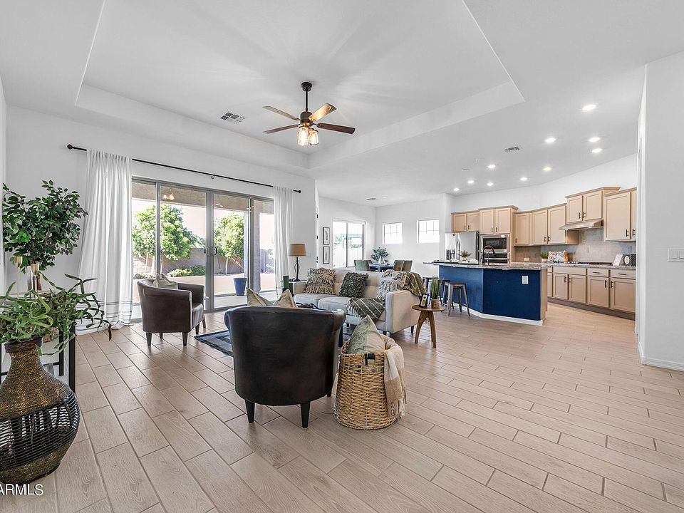 Welcome to the highly sought after amenity rich Alamar community of Avondale, Arizona. This single level 2335sf David Weekley Home is show ready with 3 bedrooms, a double door office (optional 4th bed) and features highly upgraded entertaining areas inside and out including a spacious kitchen with great room and a professionally landscaped backyard with seating areas, growing trees & a covered patio to enjoy Arizona sunsets year round with no neighbors behind. No need to wait 10-12 months to build the popular Cedarcrest floor plan new when this extremely lightly lived in home is ready for you today with finished landscaping in the front, a 3 car garage & service door, and all of the upgraded selections you would choose in the design center including staggered cream cabinetry in the... kitchen, an ensuite bath in the master, neutral wood plank tile with 5'' baseboards and plush carpeting throughout, and the bonus of having all appliances, owned solar, and window coverings included. Spread over 1,150 acres, including dozens of parks, miles of trails, and expanses of recreation space including a neighborhood pool, dog parks, sport fields & courts, outdoor gathering venues, events & more right in your backyard, Alamar is more than a place to live. It's a lifestyle rooted in community and within walking distance to the new Lakin Prep Academy, the community continues to grow around your new home!