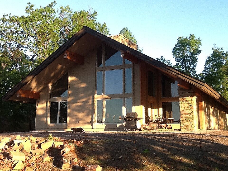 Architect designed lakefront home with a private beach that lies in the gated community of Dover Estates on the Northwest part of Lake Eufaula. This home has an open floor plan, modern craftsman style with a massive stone fireplace reaching 22 feet in the great room. Concrete safe room/full bath on main floor. 1100 square foot, 3 car garage doubles as workshop. 24 windows give this home incredible natural light. Must see! Photos don't do it justice. 180 degree, panoramic lake view. Few homes will provide this beautiful sandy beach. The property line extends out under the water, resulting in no Corps of Engineer boundary issues. A gentle slope and short distance from house to water.