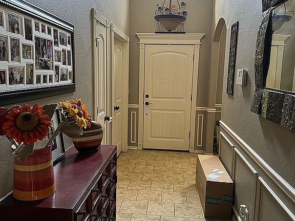 It’s 1,841 sf. There is an HOA. it costs about $110 a year. The lawn has been well maintained with aeration. It’s got vaulted ceilings, crown molding, chair rails, molding design, arched doorways, all rooms have ceiling fans. The master bedroom has vaulted ceilings, a huge walk in closet and an en suite with two separated sinks, jetted tub and walk in shower. The guest bathroom has a tub with shower. Plantation shutters in the front bedroom/office and the living room. An island in the kitchen with all pretty new appliances as well as a two year old top of the line A/C unit. It’s in a very nice neighborhood, and in my opinion, the best spot in the whole neighborhood. Neighbors are awesome people.