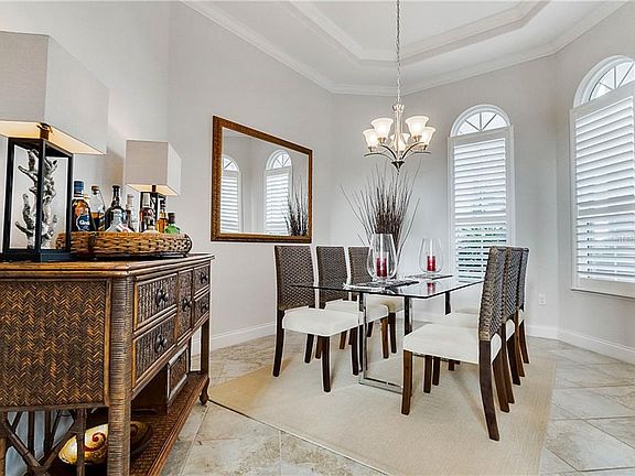 - Interior Features: Ceiling Fans(s), Eating Space In Kitchen, High Ceiling(s), Master Bedroom Downstairs, Stone Counters, Walk-In Closet(s), Crown Molding, Solid Wood Cabinets, Thermostat, Kitchen/Family Room Combo, Window Treatments, Cathedral Ceiling(s), Tray Ceiling(s), Coffered Ceiling(s)
