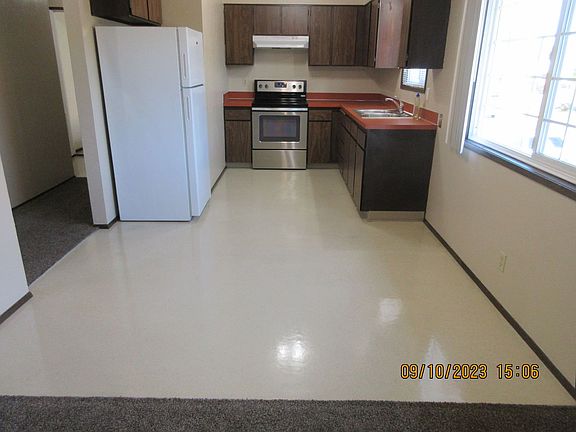You'll like this spacious, clean and well maintained Triplex unit with water/sewer/garbage included in rent. This is upstairs unit. Electric forced air furnace. Range and refrigerator provided. Inside utility room with washer/dryer furnished. Nearly new carpeting in LR, hall, and bedrooms. Landscaping provided. Parking off street in front of unit. Bus stop close by. One year lease. No pets.