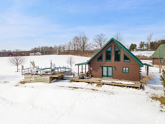 Don't wait, reduced for quick sale! Relax you're at the cabin! This cabin sits on a well appointed, private acre with tree lined driveway and breathtaking views all around. Enjoy high ceilings, a cozy gas fireplace, cherry floors, and a spacious detached garage with heated workshop, upper level and half bath. The heated upper level features a dry bar, pool table, deck with views and more, perfect for entertaining. Relax and soak up the views on the covered porch, in the above-ground pool, or the open deck off the living room. Perfect for peaceful retreats or family getaways! Snow mobile trails close by. This property has something for everyone. Whether full time or part time, make this your dream retreat.