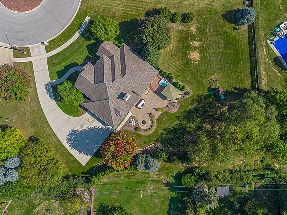 Welcome to Bordeaux Estates. This stunning French country inspired home offers 3,147sf of thoughtful living space on a beautifully landscaped 3/4-acre cul-de-sac lot in one of Bourbonnais' most prestigious neighborhoods. Step inside the impressive two story foyer with a dramatic catwalk overlooking the family room. A versatile front living room makes the perfect conversation area, study, or private home office. The spacious family room boasts soaring ceilings, a cozy brick fireplace, and walls of windows that flood the space with natural light. The gourmet maple kitchen is complete with granite countertops, newer stainless steel appliances, breakfast bar, and a sunny dining nook. Just off the kitchen, the main-floor master suite provides a luxurious retreat with two walk-in closets, whirlpool tub, oversized shower, dual sinks, and private water closet. Also on the main level you'll find a custom home theater (with flexibility to serve as a guest suite, gym, or rec room). Main floor also features a well appointed laundry room with sink, built-ins, and even space for a full refrigerator. Upstairs, three additional bedrooms, two full baths, and a walk in attic are connected by the dramatic catwalk, providing both function and flair. The full basement offers endless possibilities with 10 foot foundation walls, bathroom rough-in, and radiant floor heat already roughed in. Outside, enjoy your private backyard oasis: a covered patio plus an expansive brick paver patio with gas firepit, composite deck leading to the hot tub, and pergola tucked among lush landscaping designed for maximum privacy. Perfect for entertaining or quiet evenings at home. Additional highlights include: Side load 3 car garage with extended driveway, Roof in 2018, recently updated furnace and A/C. Premium cul-de-sac location with mature trees and a neighborhood known for prestige and tranquility. This Bordeaux Estates beauty blends elegance, comfort, and versatility, making it the perfect forever home.