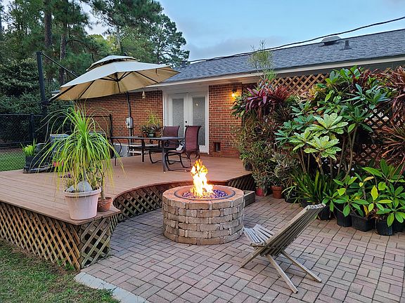 DO NOT FEED OR PET ANIMALS. Your chance to have your own mini-farm and home. 5 acres fenced and cross fenced with a Brick 2 or 3 BR home and 1.5 Bath set in the middle of beautiful mature tropical plants and gardens. Outbuilding, Pole barn, Green house, Catfish Pond. Secluded deck with firepit is quiet and private. No neighbors in sight. Too much to list in this unique property. Appointment Only.