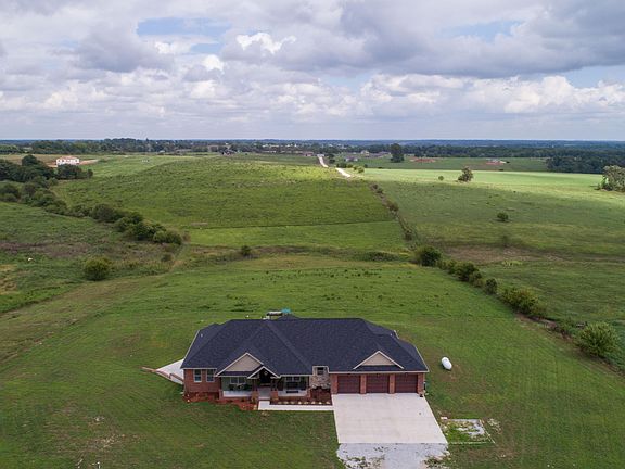 Luxury living in the country! Beautiful custom built walk out basement home in Terrell Creek area. Home offers 5 bedrooms, 3 full baths and 1 half bath, formal dining area,large laundry, 2 large living areas,3 car attached garage on 4.79 acres m/l. As you enter home will notice right away the open floor plan, formal dining,scenic window views, stone mantle gas fireplace and stunning kitchen. Kitchen boasting whirlpool appliances-gas top stove-wall oven-island with bar seating-granite counters-under cabinet lighting-ship lap ceiling.Marble counters in laundry and baths. Sound proof floors upstairs. Views all around off large patio and large covered deck also having great set up for outside TV. Enjoy the country feeling but close to shopping, Civic Center, schools and parks.Republic Schools