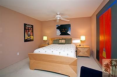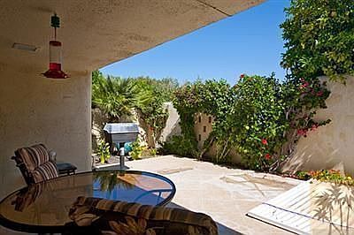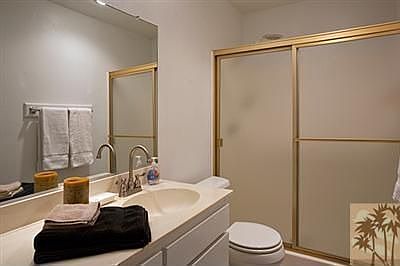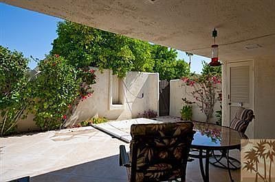 Priced below recent sales! Prior rental history! Available furnished, too! Tour this single level condo with large private patio and inground spa! Tiled kitchen, living and dining room areas feature wet bar and direct access to the ultra private patio with mountain views and private spa. Two large master suites with private bathrooms are on opposing ends of one another allowing for great privacy! Dedicated covered parking, community pool and spa, and a motivated seller. Easy to show and ready for immediate occupancy.