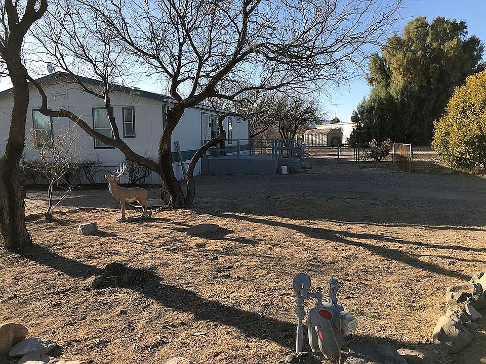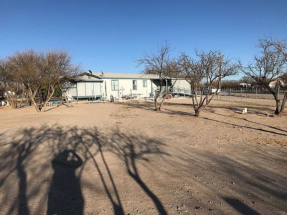 1.07 acres on Pomerene Road with circular drive and parking for 10 cars. Back gate opens on Morris Lane. New Air/Heater, New Mini Split Air/Heat in family room that also heats/cools bedroom. Wheelchair ramp. Master bath has double doors for wheel chair access and garden tub. New paint outside. New LVT floors with 25 yr warranty whole home. Mature trees with auto water system. Separate dining room. Master suite on one side, 2 bedrooms and family room on other side. Home set at angle so Solar panels could be added. Well rights included and at 50-75 feet. Animals allowed including horses, garage has 2 giant doors suitable for horses. Water from Pomerene Water, access to water all over entire 1.07 acres. garden area in front with afternoon shade. Mature trees, bird bath and 2 stone benches, dog run fenced separately. Entire property Fully fenced.