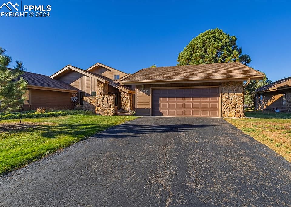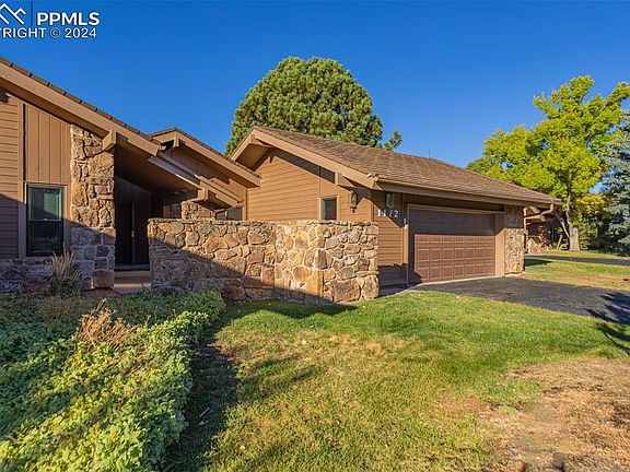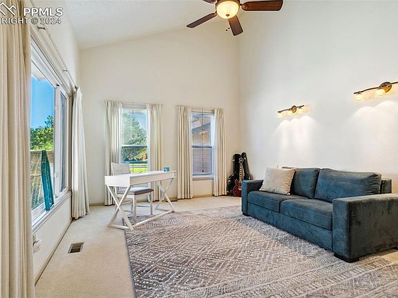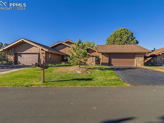 Nestled in the prestigious Kissing Camels community, this stunning townhome offers breathtaking views of Pikes Peak and is a golfer's dream, just a short stroll from one of Colorado Springs' finest golf courses. Step inside and be greeted by an abundance of natural light pouring through brand new windows beneath soaring vaulted ceilings. The main floor features a spacious master bedroom with a luxurious ensuite bathroom, complete with a double vanity and a large walk-in closet. The second bedroom, set up as a versatile office space, boasts direct views of Pikes Peak and includes a beautiful Murphy bed, ready to welcome guests. The inviting living room, with a cozy fireplace, flows seamlessly into the kitchen—perfect for hosting family gatherings and entertaining friends. Upstairs, the loft provides a wide-open space ideal for an additional bedroom or office, with plenty of storage and an oversized walk-in closet that can be used as a flex room. Step out onto your shaded porch, surrounded by the beauty of a majestic cottonwood tree, and enjoy the option of additional cover with an electric awning. This home has been meticulously maintained, featuring a 2019 Decra metal roof, newly replaced windows, brand new washer/dryer, and well-maintained furnace, A/C, and water heater. Don't miss your opportunity to make this golfer's paradise your new home in Kissing Camels!