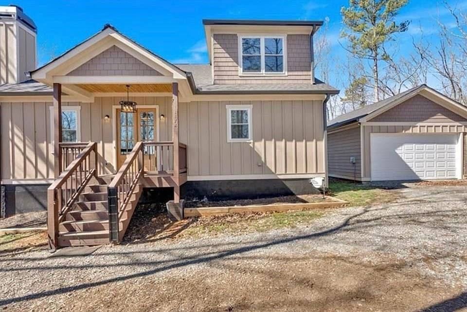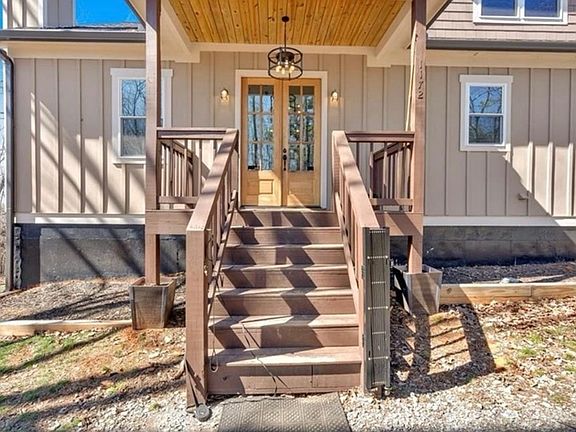 Welcome to this stunning modern mountain retreat situated on 1.27 acres in the highly sought-after Talking Rock Creek Resort. Less than four years old, this beautifully designed home offers the perfect blend of modern comfort, mountain charm, and resort-style living. As you enter, you are welcomed by an open-concept layout featuring vaulted ceilings, iron railings, and a gorgeous stacked-stone wood-burning fireplace. The kitchen is thoughtfully appointed with shaker-style cabinetry, tile backsplash, granite countertops, and a large quartzite island with additional seating. The oversized primary suite on the main level includes a custom walk-in closet and an elegant en suite bathroom with a beautifully tiled shower. The main-level laundry room adds convenience for everyday living. Upstairs offers two spacious bedrooms and a full bathroom, providing ample room for family or guests. The finished daylight walkout basement is ideal for an in-law suite, teen space, or entertainment area. It includes a full wet bar with dishwasher, granite countertops, a wine cellar, generous storage, and potential for a fourth bedroom. A detached garage provides additional parking and storage. Enjoy beautiful mountain and sunset views from both the front and rear covered porches, perfect for relaxing in a serene setting. Talking Rock Creek Resort spans 5,500 acres and is known for its natural beauty, seclusion, and extensive amenities including two swimming pools, tennis courts, a fitness center, private stocked lake, Talking Rock Creek access with excellent trout fishing, walking trails, wildlife, and recreational spots such as the beach area near the Trout Lodge, which can also be rented for special occasions. Short-term rentals are permitted, offering excellent income potential. Whether you are seeking a full-time residence, vacation home, or investment opportunity, this exceptional property offers the best of mountain living in a premier gated community. Come see everything this home