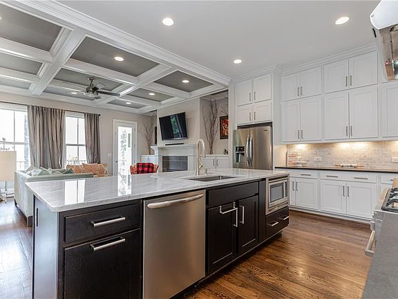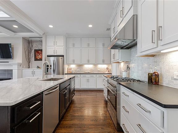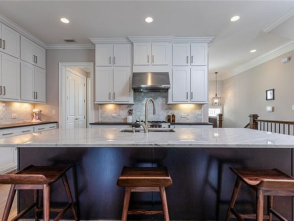 - Kitchen Features: Breakfast Bar, Pantry, View to Family Room, Stone Counters, Kitchen Island, Cabinets White