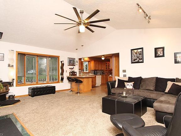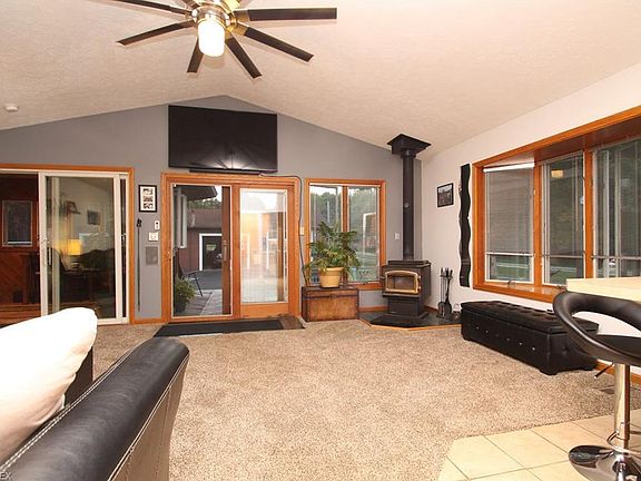 Welcome home to this immaculate ranch on 1.3 acres with a detached 3-4 car garage and workshop, complete with heat & air! A formal living room with refinished hardwood floors leads into the remodeled kitchen with gorgeous cabinets, modern backsplash, under cabinet lighting, breakfast bar & all appliances will remain! The vaulted great room has a wood-burning stove, bayed window & sliding glass doors to the spacious deck. Wall of windows line the bright sunroom with gorgeous tile flooring. The master bedroom has a private entrance into the sunroom...a perfect place for relaxation! 3 Additional bedrooms, all with refinished hardwood floors, and a full bath complete the first floor. This home is situated on a beautiful tree-lined lot and is move in ready!