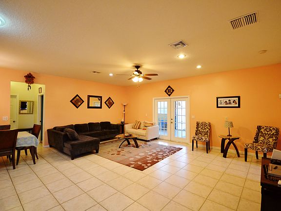 Beautiful 4/3/2 corner lot home in a desirable area with many upgrades and a 2007 addition, which includes a 2nd full master bedroom (in-law suite) and a huge enclosed Florida Room under air. Extra wide driveway to fit 6 cars! Newer 2009 HVAC system and gas water heater. 2013 new appliances and newer washer and dryer. 9' ceilings, updated kitchen cabinets with granite counters and gas stove. Recently painted in & out. A terrific side yard, fully fenced in with gates on boths sides of home. 9' double gate is big enough to store a boat and HOA is ok with that! Mango and lychee trees! 6' hedges create a very private yard. Extra storage and shelving in the garage with an insulated door, cooling is possible if you want to use it as a workshop. Extra fridge in garage can stay.