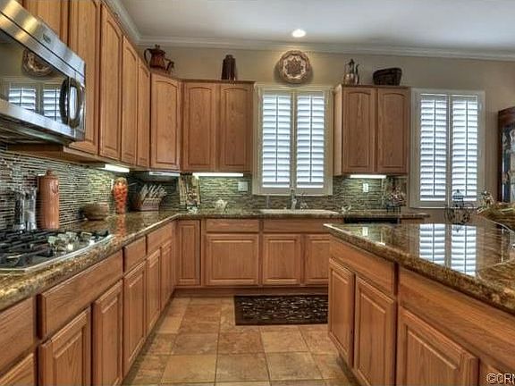 One of a kind Emerald model in the 55+ guard gated Active Adult community of Solera at Oak Valley Greens. The list of upgrades are endless: Deep Rich colored tile flooring, Gorgeous Granite counter tops in kitchen with designer glass back splash, Granite in bathrooms with designer sinks and faucets, Crown Molding throughout, Plantation Shutters, Stainless Steel double oven and appliances, 5 burner cooktop, Built In Entertainment center, custom tiled master shower with all glass doors, huge walk in closet, built in BBQ, full length alumawood cover, private enclosed patio, and a built in spa with custom waterfall feature. The home is located on a corner lot with no other homes behind it and offering amazing views of the mountains. The community features include an amazing gym with indoor walking/jogging track, Billiards room, Library, Tennis courts, Boce Ball courts, Pool and spa, tons of clubs and activities. You will not find a nicer home in Solera, this is the best! Check out the virtual tour!
