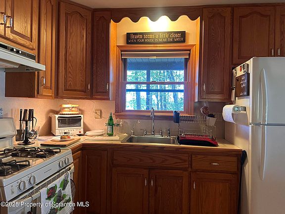 !!!!!!!!!!! LAKEFRONT PROPERTY !! !!!!!!!!! Enjoy the peacefulness of this beautiful Pocono Summit 63-acre lake. The charming 2-bedroom 1-bath house is nestled in with Mother Nature. This is a Custom Designed home. The floors are Red Oak Hardwood. The living and dining areas have cathedral ceilings. The windows are Anderson Tilt Wash. The roof is fiberglass with a 35 year lifetime. The window blinds throughout are Levolor cellular custom made. The dining area opens with wood framed sliding doors onto a 8' wide covered porch where the magic of the outdoors begins. The lake boasts spectacular views. Every morning, the birds will be singing as you wake to see the glorious sunrise over the lake. Wait till you see the sunsets. God's paintbrush at its finest. Enjoy having fun sailing, boating, canoeing, fishing, rafting or swimming. All four seasons offer so many reasons you'll love living here. You'll see an abundance of wildlife, including swans and their cygnets, beavers and lodges, ducks and geese. Seeing mamma deer with their young doesn't get old. Occasionally, you may even see raccoons, opossums, and a black bear with her cubs meandering through. During winter, the lake looks like glass, while the colors of the leaves in the fall are just spectacular! This is NOT a planned community; there are NO FEES to pay.There are several boat launches, a beach and a Clubhouse available for use.Shopping centers are less than a mile.A completed perc test is available upon request of an AOS. The Appraisal Report dated July 2025 reflects the asking price. A survey available. is attached. Land is available across the street, listed under MLS#. SC-254338