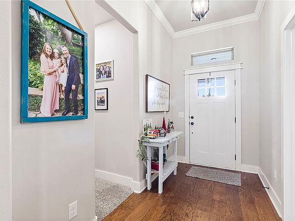Seller will pay $3000 in buyers closing costs, WAO, in this newer home! Fence, blinds, gutters and upgrades have all been completed. As you open your new front door you're greeted by an open living area with wood floors, wall of windows along back beaming natural light and beautiful central fireplace. Living area opens to bright kitchen and dining area perfect for family meals and get togethers. Kitchen features large granite island bar, sleek white cabinets, granite counters, pantry and stainless appliances with gas range. Master situated at back of home has tray ceiling and en-suite with dual granite vanities, shower and Jacuzzi. Two more bedrooms and bathroom down the hall with 4th bedroom or office on opposite side. Large laundry room has granite folding table and mud area off the garage. This perfect floorplan includes lots of storage and floored attic. Grill under the huge covered patio and watch the kids and dogs play in big flat fenced yard. Resort style community pool, cabana and playground around corner.