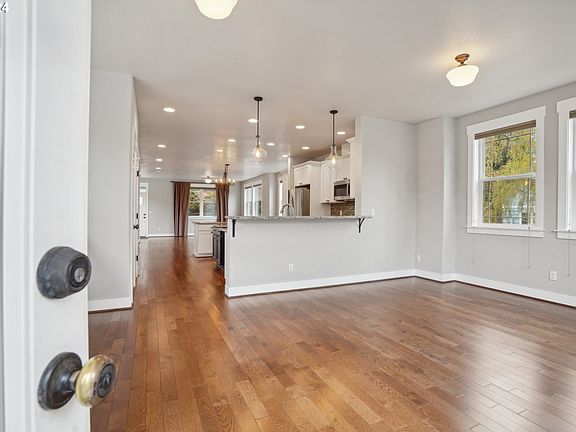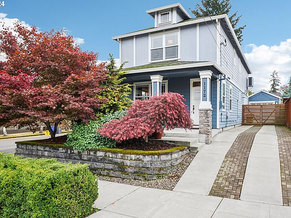 Situated on a corner lot this home features generous windows, high ceilings, and an inviting open and spacious main floor layout. The great room showcases a modern kitchen equipped with ample counter space, high-quality Bosch appliances, and a large island. Featuring natural stone countertops, hardwood flooring, and timeless finishes. The main level is a perfect blend of elegance and comfort, ideal for both gatherings and cozy evenings by the fire. Upstairs, you’ll find three bedrooms, including a primary suite with custom built cabinetry, recessed lighting, a walk-in closet and an ensuite bathroom featuring double sinks and a linen closet. The laundry is conveniently located on this level, alongside a guest bath with ample storage. Step through French doors on the main level, into a low-maintenance, fully fenced backyard, featuring a charming patio, raised garden beds, and a heated chicken coop. Surrounded by cedar fencing and large gates for convenient street access, this outdoor oasis is perfect for entertaining and privacy. A one-car garage and sizable driveway offer ample parking for at least 4 vehicles or can serve as RV parking. This meticulously maintained home meets modern energy efficiency standards with upgraded windows, a 90% efficient furnace, and air conditioning. Nestled in the heart of the Dekum/Woodlawn Triangle in NE Portland, this charming neighborhood is known for its friendly atmosphere and urban conveniences. You’ll find a variety of restaurants, public transport options, and the expansive 7.5-acre Woodlawn Park—perfect for outdoor activities and leisurely strolls. Enjoy move-in ready comfort in a fantastic location, just minutes from Portland's best eateries, such as Woodlawn Coffee & Pastry, Good Neighbor Pizzeria, and Breakside Brewery. [Home Energy Score = 5. HES Report at https://rpt.greenbuildingregistry.com/hes/OR10147325]