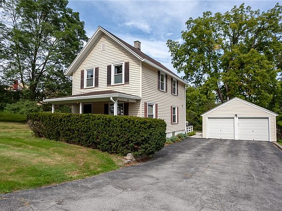 Charming Colonial built at the turn of the century with beautiful original front door and staircase in a park-like setting. Meticulously maintained and thoughtfully upgraded and improved, this home is a hidden gem. 3 bedrooms, 2 full bathrooms, a spacious eat-in kitchen with granite countertops, and abundant natural light throughout. Updated electrical and HVAC/central air with whole-house humidifier and fiber internet. Tear-off roof in 2023 with 50-year transferrable warranty and new gutters, plus a roomy, oversized garage. With all these updates already completed for you, sit and relax at a cozy, newly-poured concrete patio while enjoying views of rolling lawn and mature shade trees. Conveniently and centrally located, 20 minutes from downtown Rochester, Pittsford, and Victor while also being a scenic 35 minute drive from Canandaigua, Letchworth, and the Finger Lakes Wine Trail. Easy 5-10 minute walk to post office, library with community events, playground, and Lehigh Valley Trail, and less than 10 minutes to Mendon Ponds Park and Honeoye Falls. Enjoy quiet living with a perfect balance between access to culture, shopping, and great food!