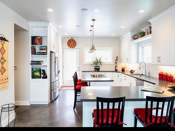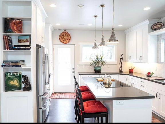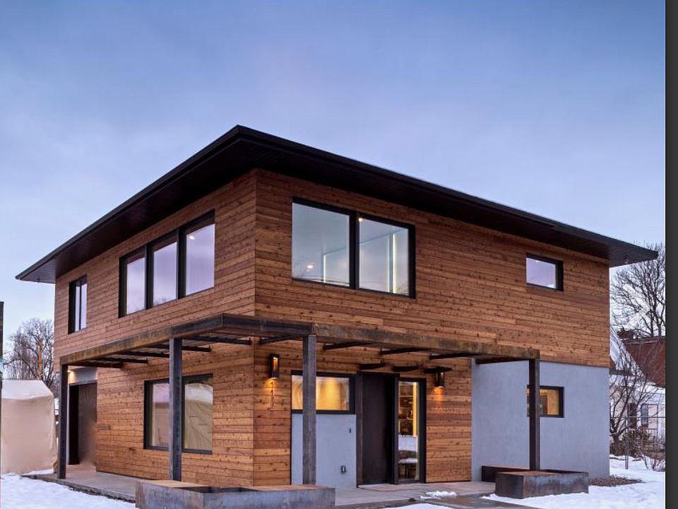 Designer finishes: quartz counters, sustainable materials (renewable cedar, recycled steel), Bosch appliances, solid wood doors, and light-filled open layout with vaulted ceilings and Big Ass fan.