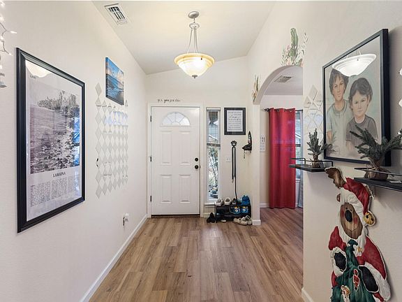 Welcome to your new home in a quaint, pocket neighborhood just south of town. Covered front porch invites you into this 3 bedroom, 2 bathroom home with 1622 SqFt. Chef's kitchen featuring ample counter space, pantry and island with a high bar showcasing a modern and stylish design. Spacious living room with vaulted ceilings and patio access. Open concept layout is popular for creating a spacious yet connected feel. Primary Bedroom with walk-in closet & en-suite bathroom with dual sink vanity & walk-in shower. Dedicated laundry room off attached two car garage. Backyard featuring mature trees for shade and privacy make this house complete. Located close to town and shopping is a practical advantage, offering convenience for daily needs and leisure activities. Don't miss your chance, come tour today before it's too late!