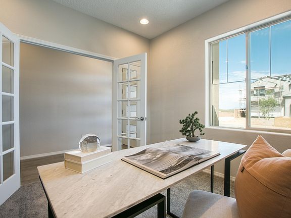 Brand new, never lived in Pulte home in our new Vallecito at Fiesta community. Enjoy brand new appliances, new carpet, new A/C, new tankless hot water heater, and so much more! This home features an extended covered patio perfect for outdoor entertaining, a private office with French doors and sidelights, garage extension, 8' door upgrades, master suite with a large shower and a bay window, designer kitchen with beautiful white cabinets, and so much more! This home is under construction and will be completed April 2022.