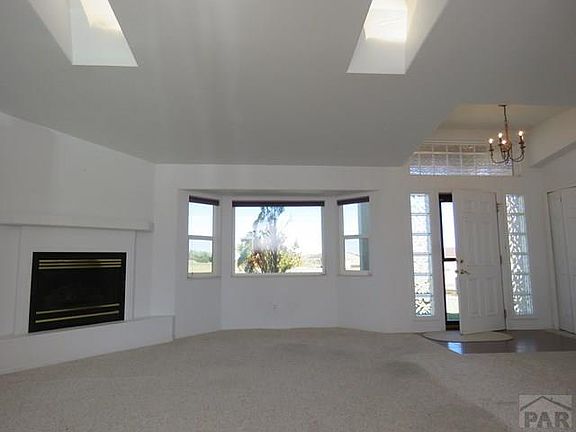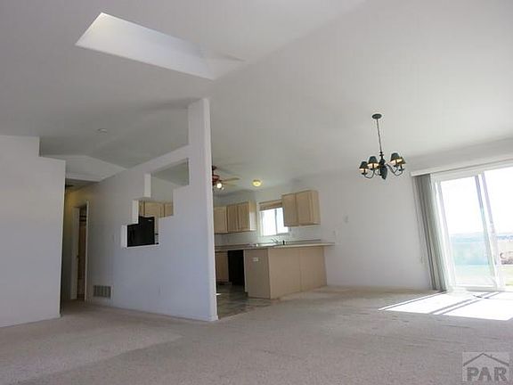 Reservoir view! This home has an open kitchen, dining, and living room area with cathedral ceilings and lots of light. The living room has 2 skylights and a gas log fireplace. There is a large master bedroom with a 5 piece bath plus the master closet has a laundry chute. The kitchen has honey oak cabinets and 2 lazy Susans. All of the appliances stay. The back patio offers a nice view of Lake Pueblo. This home sits on 1.9 Ac and backs up to the State Park. Stop by and have a look!