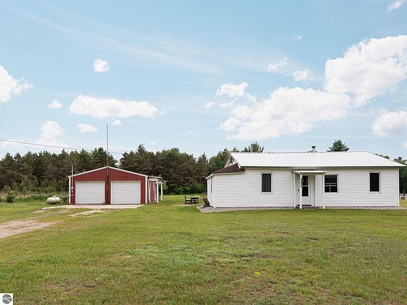 Welcome to your cozy retreat nestled on two acres in beautiful Northern Michigan! This updated three-bedroom home offers a perfect blend of comfort and convenience - ideal as a year-round residence or a weekend getaway. Affordable housing opportunities like this are rare in such a scenic setting. Outdoor lovers will appreciate the prime location just minutes from Hopkins Creek and close to hundreds of acres of pristine state land. Recent upgrades include flooring, fresh carpeting, paint, a mini split unit for heating and cooling, and water heater. The home also features a durable roof and siding (2006), along with blown-in attic insulation for energy efficiency. A standout feature is the spacious 40x24 heated pole barn with an additional 26x24 space—perfect for a workshop, mancave, or hobby space. Step onto the covered back screened porch and enjoy a peaceful backyard complete with apple trees, mulberry trees, and a thriving blackberry patch—ideal for gardening or relaxing in nature. Located on a paved road with Spectrum high-speed internet available, this home combines the charm of country living with the convenience of modern amenities. Don’t miss this opportunity to own your piece of Northern Michigan paradise!