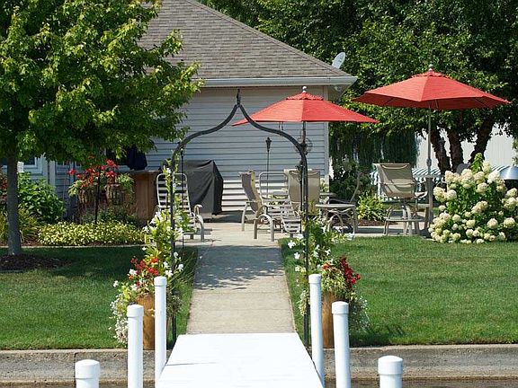 A beautiful drive leads you to this large private lot with expansive views! This property offers 120 feet of lake frontage and 120 feet of channel frontage on Lake Wawasee, Indiana's largest natural lake. Lake Wawasee has a long-standing history of being a summer vacation area since the 1800's, drawing residents from all over the tri-state area of Ohio, Illinois and Indiana. There's a wonderfully social culture around the lake and when the summer residents return home for the winter, the town of Syracuse remains active. While many homes around the lake are intended primarily for summer use, the lake is certainly a place to enjoy in all seasons and reside on a permanent basis as well. Lake Wawasee offers over 3400 acres of water and 25 miles of shoreline to enjoy boating, skiing, tubing, and many more activities. Its depth extends to 77' at its deepest part and is a very popular spot for fishermen. The back of the home overlooks a quaint channel. Graced by established trees, three patios, lovely trellises, and a dock suitable for entertaining. It's worth the look! The spacious living room has cathedral ceilings, large windows and a sliding glass door that opens to the lake side patio. The view from the kitchen sink just can't be beat! Bright kitchen with granite and updated appliances. Attached to the updated kitchen is a bright, dining area surrounding by windows overlooking the lake. Just off the eating area is a large sunroom that opens to yet another patio with lake access. The master suite boasts of trey ceilings, sliding glass doors leading to a lake-side patio, walk in closet, jetted tub, walk in shower, and a double vanity. The master bath has been updated with granite countertops, ceramic tile floor, and a full body spray walk-in shower. The additional two bedrooms have lovely channel views. This house has a great layout for daily lake life & entertaining. GAS/ELECTRIC $180