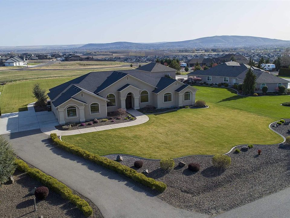 MLS# 252849 Palatial ADA-Oriented Rambler with Top Notch Finishes in one of the highest demand locations in the Tri-Cities. Magnificent Entry to Great Room with 13 to 14 Foot Ceilings, Slate Tile through to Kitchen, Propane Fireplace with Mantle and Beautiful Built-Ins. Five Bedrooms, or Four Bedrooms, plus Family Room/Den, Music Room (with Hardwood Floors and Crown Molding), Forever Formal Dining Room (with Hardwood Floors and Crown Molding), Kitchen Nook with Built-In Seating, Ample Kitchen Counter Space and Extra Tall Cabinetry and Wine Rack. Very Special Dual Room Master Bed setup for those Family or Friends who need additional Space or Tender Care - The Two Master Rooms (One carpeted, one with Hardwood, both with Walk-in Closets) are adjoined by an ADA designed Master Bath with multiple Vanities, Soaker Tub, Extra Wide and Deep Tile Shower with Window, and Third Walk-in Closet with Window. Additional Bedrooms and Family Room/Den are in their own Private sections of the Home, Two at a time, conveniently paired with a full bathroom. Lots of Closet and Storage Space. All Appliances Included. Central Vac, Owned Water Softener, Owned Propane Tank, Upgraded Electrical, Extra Tall Double Garage Bay Door (plus extra Deep Third Single Bay). Back Covered Patio Features a Panoramic View of the surrounding hills. One Acre Lot gives you plenty of room to build a Shop, park your RVs, Boats, additional vehicles, etc. Nice long Delicately Curved Driveway. Private Well and Private OSS. Freedom, space, luxury...viewings by Appointment Only.