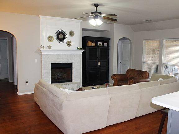 Roomy, 5-bedroom home in Eddington Place! This beautiful home has an open floor plan with split bedrooms. Master Suite has trayed ceilings, crown molding and wood flooring. Master Bath includes garden tub, separate sinks. Kitchen features stainless steel farmhouse sink and appliances, large center island with eat-in bar, beautiful white granite counter tops, subway tile back splash, and large pantry. Living room features great natural lighting through full wall windows and wood flooring. Other amenities throughout include arches, bead board, crown molding and wainscoting. Fully fenced backyard. 2.5 car garage. Included in neighborhood are walking trail, fishing pond, playground and neighborhood swimming pool. Quick access to Highway 75, Hwy 169/Creek Turnpike and minutes from Tulsa Hills. For more information on this home, or to view the home call Shari Pope (918) 841-0416