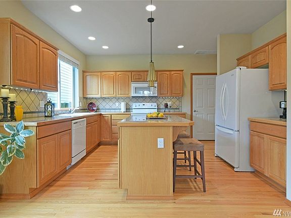Move right in! Light & bright, almost new 4 br + office/den, 2.5 bath 2 story home. You will love the open concept kitchen, dining & family area. Gleaming hardwoods, granite counters, indirect lighting, huge prep island w/ eating space. Large dining area seats 6+ comfortably. Upgraded finishes for an elegant, polished look. Huge master w/ 5 piece bath; soaking tub & large walk-in closet. Oversized 4th bedroom - almost 2 masters! Tankless water heater, convenient to shopping & Glacier Peak High.