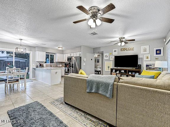 Enjoy Florida living in your beautifully updated pool home! Perfectly located near the St Johns Town Center, UNF, FSCJ, Mayo Clinic, the beach, and more. You are greeted by a large horseshoe driveway and covered front porch. The kitchen features white shaker cabinets, a herring bone backsplash, stainless steel appliances, quartz countertops and is open to the dining and living space. A split floorplan with a primary suite to dream of! The primary bedroom features a gigantic walk-in closet and dressing room with custom shelving, an island for shoes, and tons of smart storage. The primary on-suite has updated quartz countertops. The home is upgraded with Solar panels, smart features and security including a ring doorbell, ADT security system, and Ecobee thermostat. The backyard is paradise! Chlorine pool with new pump/equipment ('20 and '22). There is an outdoor shower to rinse off near the pool. The front and back of the home features gutters and the windows were updated in October of 2022 (Ecoview transferrable warranty).