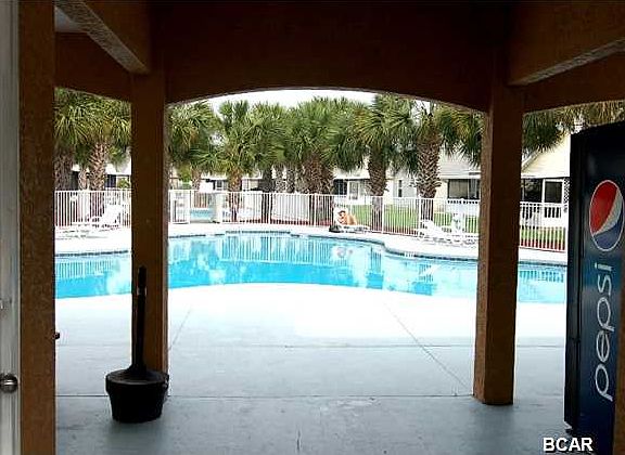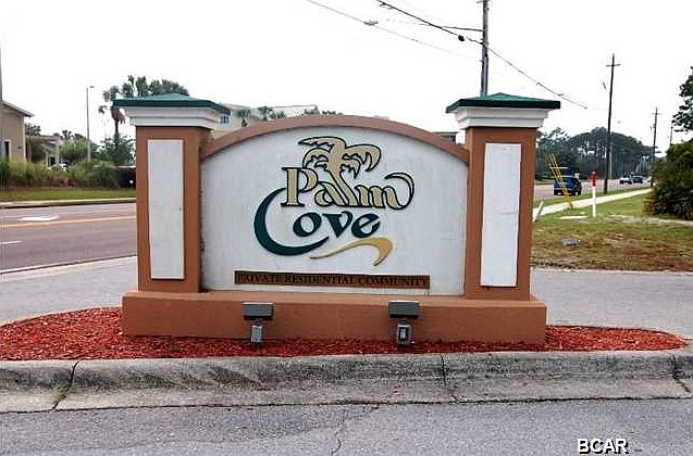 This is the Private Residential Gated Community of Palm Cove here in Panama City Beach and is close to the emerald green Gulf and our world famous sugar white sandy beaches. This three bedroom, two bath home has 1350 Sq. Ft. with a single car garage and parking for two in the driveway. There is a front porch and a screened in back patio. There are two community swimming pools and one of those is a salt water pool. The Home Owners Association maintains the pools and the landscape around your home. Wow, no grass cutting giving you plenty of time to enjoy yourself. The home has an open floor plan. In the fully furnished kitchen you will still have complete contact with everyone in the eating area and the family room. Don't worry about spills because the area from the front door through the kitchen, eating area and family room are all tile as are both bathrooms. All three bedrooms are carpeted. The master bath has twin lavatories. The master bedroom has a walk in closet. Applebee's and Bonefish are close by as is the post office. Call today for an appointment to see this home. You will feel secure here. Security does patrol the neighborhood from 9:00PM to 5:00 AM. The Sellers are currently repainting in neutral colors.