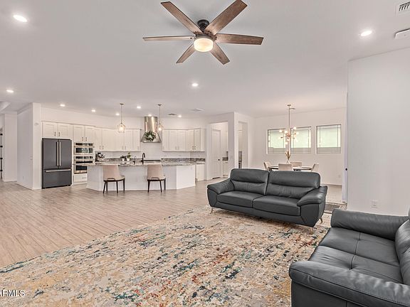 WOW! This stunning home is almost brand new. Built in 2022, this home features 4 full bedrooms, 4.5 bathrooms, plus an office and spacious den. Step into the open and bright living area with an upgraded gourmet chef's kitchen. The large multi-slide door opens to the outdoor living area with new landscaping. The primary suite has tons of natural light, a large bath with dual vanity, step-in shower, and TWO walk-in closets. This home includes TONS of upgrades throughout. The front yard and private back yard feature easy to maintain turf and pavers. The new Alamar master-planned community near the Sierra Estrella Mountains offers dozens of community parks accented by custom art installations, community pool, walking and biking trails, community events and clubs. (continued) This home is a short-walk to the Hay Moon Park & Pool, the new 40 acre Alamar Park, and the Lakin Prep Academy is expected to be completed by the Fall 2023. Conveniently located close to shopping, dining, and the I-10 for quick commutes. See included full list of features.