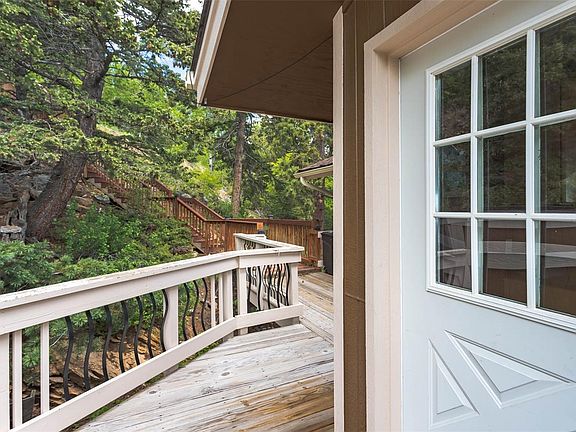 Rocky Mountain View Home on top of the world. This wonderful home features an open floor plan flooded with sunlight, vaulted ceiling, wood burning fireplace & hardwood flooring. Expansive windows frame breathtaking views of forested hillsides & majestic rock outcroppings. Gourmet kitchen has been updated with newer stainless appliances, granite, commercial style gas range/oven, bar seating and open to the dining and living area with wood burning fireplace and access to a spacious view deck. Relax gazing at starry skies and twinkling city lights. Walk-out master bedroom features a cozy pellet stove, bay window and walk-in closet w-built-in shelving. Shared 5-piece master bath is luxuriously appointed w/heated floor. Main level office has closet and separate entry. Newer roof in 2013. Detached woodshed/shop has electricity. This is the mountain home you have been dreaming of and only a 30 minute scenic drive to Boulder & Golden - 30 to Nederland and 35 minutes to Eldora Mtn Ski Resort.