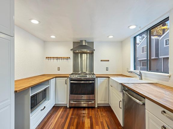 Beautiful move-in ready townhome! Enjoy a spacious living room with a charming wood-burning fireplace, and a dining area with a convenient pass-through to the kitchen. The kitchen features updated stainless steel appliances, butcher block counter tops and ample storage space. Upstairs, the primary bedroom boasts a private vanity area, walk-in closet, and shares a full bath with a second bedroom. Additional highlights include an attached two-car garage with a separate laundry/utility room, newer windows, large back patio and a private front patio. Prime location near Aurora Town Center, Gardens on Havana, I-225, and Highline Canal!