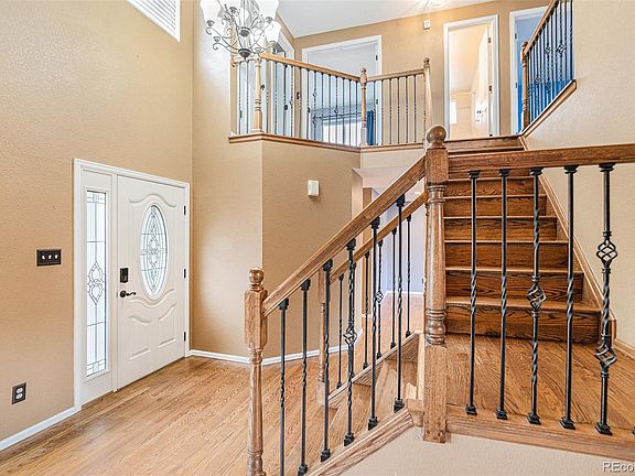 Discover this inviting family home, designed with both comfort and style in mind! With plenty of room for your growing family, this home is perfectly situated near Prairie Center, summers at Barr Lake, easy access to C470 and I76, and also offering easy access to Denver in just 25 minutes. Enjoy nearby River Run park, biking and walking trails, making this location a haven for both convenience and outdoor enthusiasts. Sunlight floods every corner of this home, enhancing its warm and welcoming atmosphere. As you enter you're greeted by soaring high cielings and a seamlessly flowing floorplan. The modern kitchen, complete with an eat-in space, blends into the family room where a cozy fireplace awaits. A spacious living room and an elegant dining room provide ample space for entertaining guests. The expansive primary suite features a luxurious 5-piece master bath, perfect for unwinding after a long day. Step outside to the backyard and relax on the stamped concrete patio, ideal for your upcoming outdoor dining and summer gatherings. The unfinished basement offers a blank canvas, ready for your personal touch and customization. Don't miss the opportunity to make this versatile and light-filled property your new home!