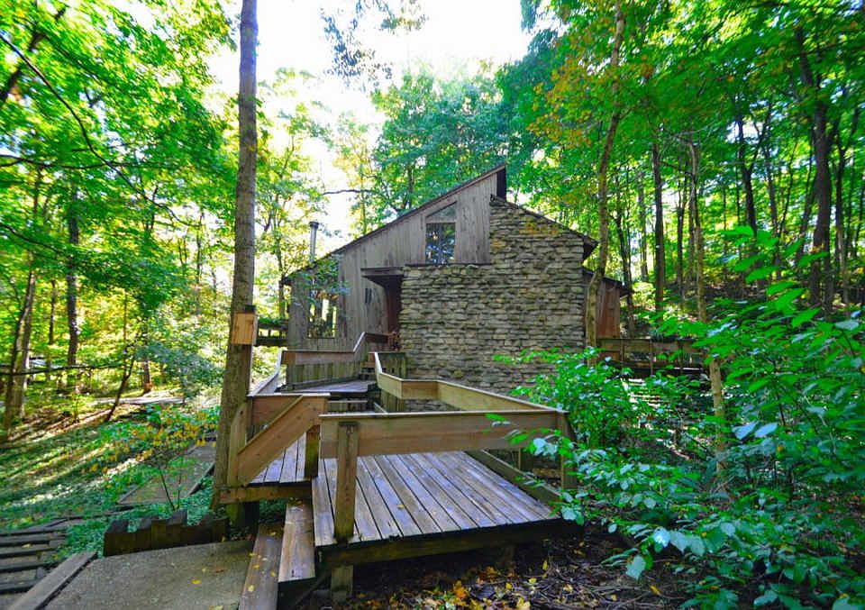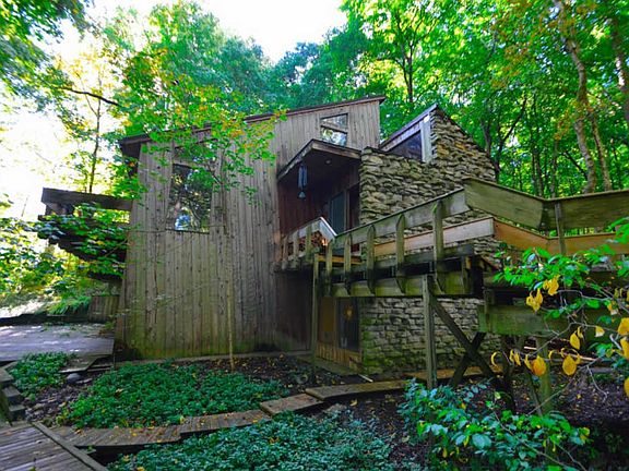 Modern Treehouse in the woods! Loaded w/details & built-ins designed & built by orig owner -designer & engineer for Formica Corp. Copper Roof. Incredible home workshop + art studio. Great light & open spaces, vaulted ceilings & clerestory windows. Walkouts from every room to multiple decks. 5 car covered parking. 3 levels+ part basement, 2 acre lot