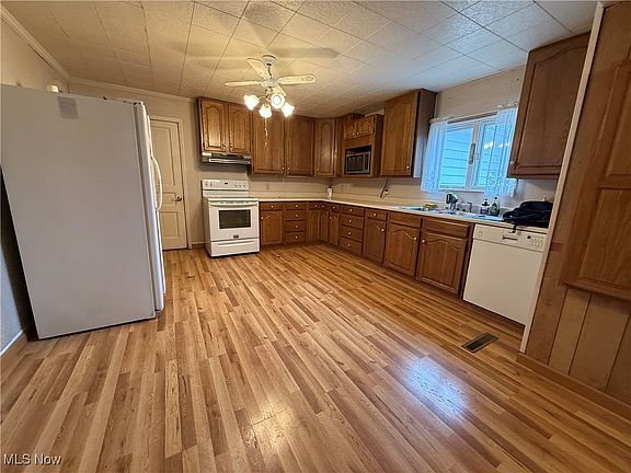 Cute 1.5 story home on 1.7 acres. minutes to Port Washington, Newcomerstown, or I77. Open concept kitchen and living room. Main floor master bed, bath and laundry make it convenient one floor living! Three season sunroom for added living space throughout much of the year. Large kitchen with tons of storage space. Second floor offers 2 more bedrooms. Roof replaced in 2024. 20x28 storage shed. Well maintained and owned by the same family for over 150+ years. Large covered front porch and patio off of 3 season room are both great outdoor spaces. Estate-Sells As Is . Agent is Related to Sellers / Estate.