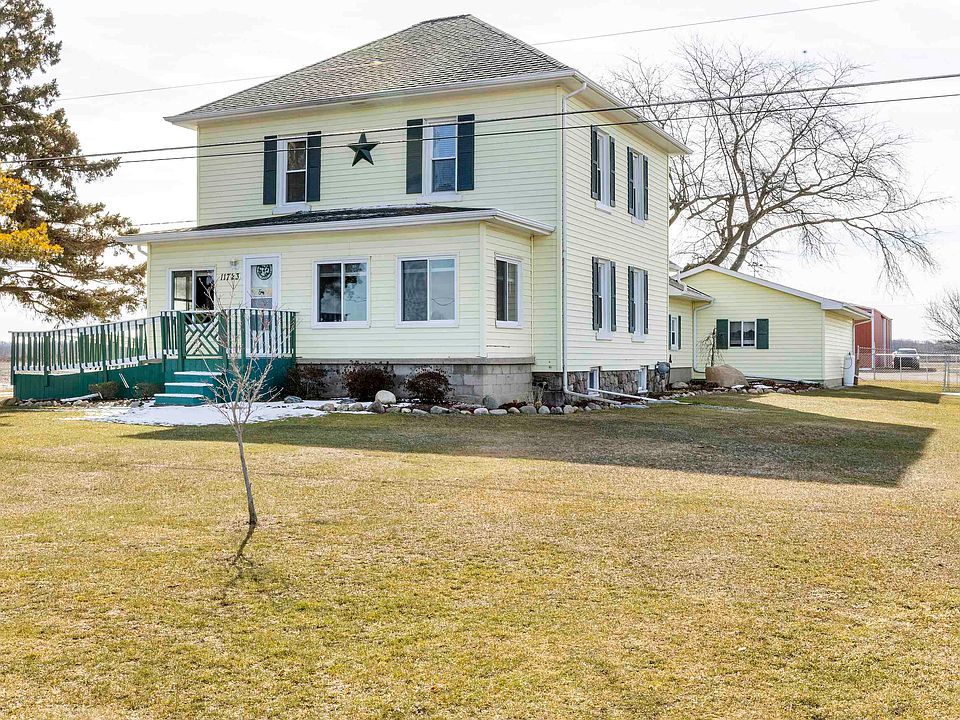 This charming 100+ yr old farm house is ready for its new owners! The 4 bed 1.5 bath home has a comfortable, light and friendly feel. A comfy breezeway between the large 2.5 car garage and the kitchen area greets your guests. New SS kitchen appliances help keep the modern farm life running! The newer windows allows an abundance of natural light and the newer vinyl floors make cleaning a breeze! New furnace, h20 heater. Roof was new 2012. Two, possible three bedrooms upstairs including one w/half bath and huge walk in closet. Main floor bedrooms are both spacious and bright. The covered front porch is the perfect place for watching the day go by! Outbuildings behind house are not a part of the property. Almost 80 acres of mostly tiled farmland also available for purchase! Contact agent for details!