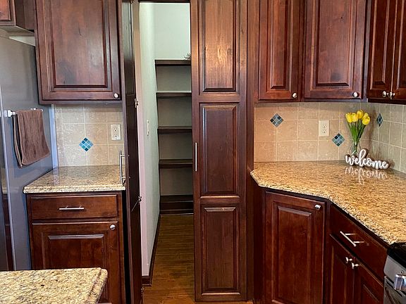 Welcome home to your Eagles Nest retreat! Custom built, waterfront home in Eagles Nest! Custom features include slow-close drawers throughout the entire home, master bedroom has coffer ceiling with lights, 1yr old "My Q" smart garage door, open kitchen with granite counter tops, gas stove & an amazing hidden walk-in pantry! This home has 3 spacious bedrooms upstairs and one very spacious bedroom downstairs. Walk-out basement has a great sized family room with a wood burning fireplace, wet bar and plenty of storage! Exterior features covered screened in balcony with ceiling fan and a covered patio. Landscaping includes 2 fruiting grape vines and a fruiting peach tree! Did I mention your new home backs up to the large Eagles Nest stocked pond? located on the end of the cul-de-sac on .27 acres and within walking distance to Maize schools!
