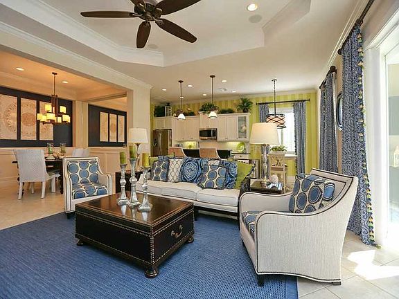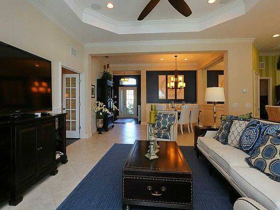 This home has it all including the most panoramic water view in Central Park! No options were spared as the owners worked w/Pure Style to design this home from start to finish. Impeccable lighted landscaping surrounds this home nestled on the cul de sac offering lots of privacy. French doors take you into foyer w/wood flooring, followed by architectural details throughout including tasteful wainscoating in DR & GR. Double French doors to den w/wood floors, grass cloth, & plantation shutters on all windows. Kitchen has expresso cabinets at island, & classic white wood cabinetry w/subway tile backsplash, under counter lighting, pot & pan drawers, silestone counters, stainless appliances, pantry closet & perfectly open to great room w/coffer ceiling & crown molding everywhere. Pocket slider from great room to spectacular heated salt water pool & spa w/huge shell rock deck including outdoor kitchen w/frig & sink, pool bath, outdoor TV & retractable awning, just great for entertaining poolside. Sizable master suite w/door to lanai, suited walk-in closets, gorgeous tile details, wood cabinetry, silestone, & huge shower. Other features include: tile on diagonal, recessed lighting, 5 l/4 baseboards, sharp faucets, attic stairs, surround sound, paver drive, radiant barrier, insulated interior walls, laundry cabinets, overhead garage storage, garage cabinetry w/work bench, and so much more. Impact glass all around. CDD paid in full! Don't miss this one!