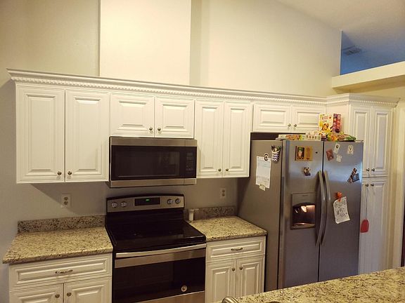 Newer stainless steel appliances in kitchen. Newer Trane AC unit and newer roof. Kitchen has been renovated. Home has large master bedroom with double sink vanity in the en suite, walk in master closet and garden soaking tub. Enjoy a 2 car garage, fenced in yard, covered patio and best of all the home does not sit on a through street.