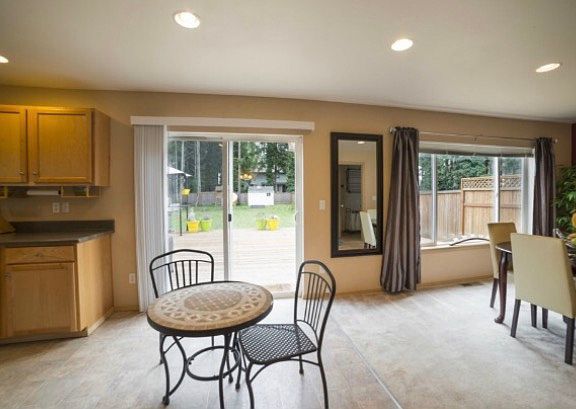 1737sf/4bd/2.5bth/2 car gar. home on 1/3rd+ acre w/room for your RV & boat. Covered front entry, open floor plan, skylights & lots of windows make this a bright, sunny home. Family room w/tile surround gas fireplace. Master w/full bath & built in closet system. Kitchen w/eating area steps out onto large backyard deck & fully fenced backyard with play structure. Storage area between homes makes this a condo-no HOA dues. Close to restaurants, shopping, schools & Silver Lake parks/walking trails.