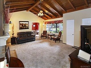 REDUCED $35,000 IN 3 WEEKS!!! Located in the heart of Valley Village within the award-winning Colfax Charter Elementary School district, this delightful 2 bed, 2 bath home boasts an expansive low maintenance yard with sparkling pool, relaxing spa, and whimsical koi pond. Peg ?n groove wood floors run throughout the home, and ceiling fans are found in many rooms. An inviting living room features a dramatic wood beamed cathedral ceiling, large picture window, and stone fireplace with wood mantle set against a wainscoted wall. The formal dining room also has wainscoted walls. The kitchen includes wood cabinets, tile counters, garden window, and stainless steel appliances. An adjacent laundry room contains additional storage. The home?s second fireplace is found in the den which share a wall of windows to a spacious bonus room with brick floor, wood beamed ceiling, and door to a covered dining patio overlooking the yard. The master bedroom offers 3 closets, including a long walk-in, and its own private bath. The second bedroom also benefits from a long walk-in closet, and also contains a vaulted wood beamed ceiling. New copper pluming throughout. Buyer to verify square foot. Brokered And Advertised By: Prudential Calif.Realty Listing Agent: Larry Margo
