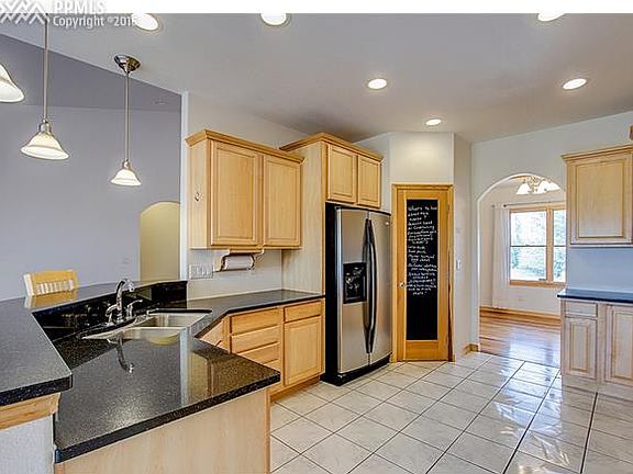 View of pikes peak, living room with Brazilian rosewood floor, huge kitchen.