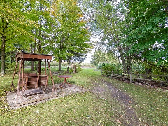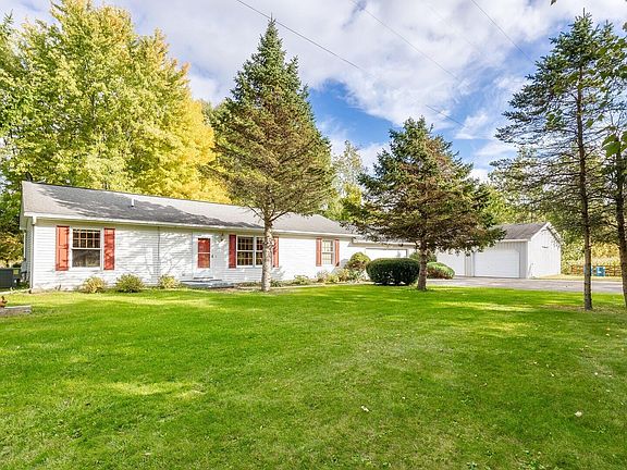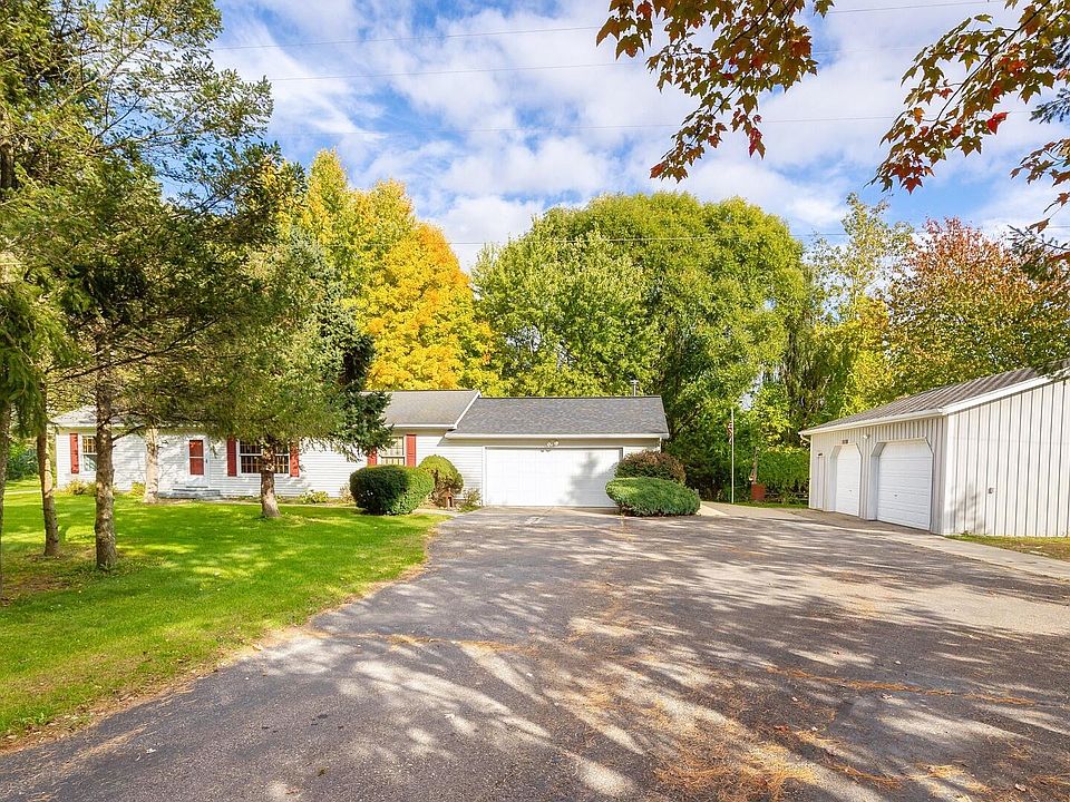 Situated on 10 acres with mature trees and beautiful grounds, this 3 bed/2 bath ranch has been very well maintained, provides extensive privacy, and offers so much! Features include spacious rooms, open-concept LR/DR/kitchen, two-car attached garage with wood stove, 3-seasons sunroom, and a huge 25x25 pole barn with electric and a concrete floor! Home sits atop a 4.5' high crawl space that is bone dry, clean, and offers ample storage. Currently a farmer in the area pays to farm 7 of the 10 acres. You get the best of both worlds....owning 10 acres but just maintaining 3! Property boasts sizable gardens, deck, patio, and numerous areas to sit and relax and enjoy the peaceful setting and wildlife that surrounds you. This one-owner home is sure to impress....book your showing today!