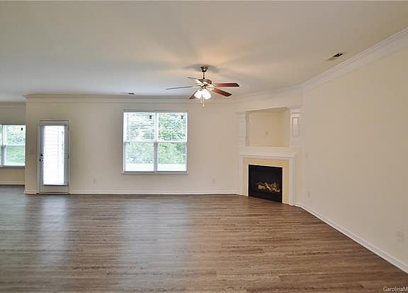 Beautiful new flooring and paint thoughout this spacious four bedroom home with loft. Open floorplan with LVP hardwood style flooring through first floor. The exceptional kitchen includes all stainless steel appliances (fridge too!), island with breakfast bar, eat-in area and large pantry. Great room is complete with fireplace and is open to both the kitchen, breakfast area and formal dining room. Dining room features beautiful mouldings and an additional sitting/den area. HUGE master suite upstairs with lots of natural light, whirlpool tub, step-in shower and double vanity sink. The three additional bedrooms are also very spacious, loft is centrally located for a perfect rec area/playroom/office. Laundry room is upstairs and the washer/dryer is included. Outdoor patio that has a treed view. Perfectly appointed home with an extra convenient location close to I485 for easy commutes.
