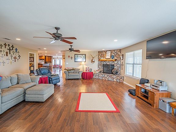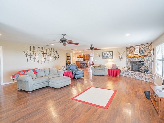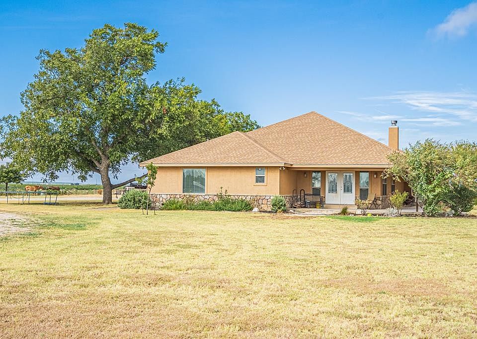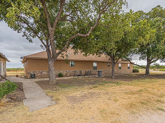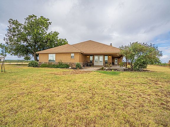Enjoy life in Wall on 4 acres in this beautiful home rebuilt in 2008, and just minutes from Wall ISD campuses. The spacious family room is perfect for entertaining, while the chef's kitchen with large bar, commercial style refrigerator and freezer is every home cook's dream! You'll never run out of space in the huge master suite complete with separate shower and jacuzzi tub.Great split bedroom arrangement offers privacy for kids or guests in 3 additional bathrooms, and 2 full guest bathrooms. Additional bonus room would make an excellent game room or study. Outside, mature pecan trees offer shade, while a wrap around porch offers country charm. Well water, and rural water are both available. Property is cross fenced, and can be sectioned off for animals or livestock. Large cinder block barn/shop/garage offers extra parking and storage.