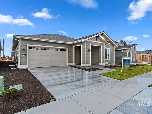 This brand-new, single-story home in Trilogy Valor, a 55+ gated community in Kuna, is priced at $626,605 and includes ~$121,705 in upgrades. The ~2,207 sq. ft. Discover floorplan offers 2 bedrooms, 2.5 baths, a den, and a 2-car garage. Upgrades include a 36" KitchenAid cooktop, built-in oven, white painted maple cabinets, Quartz countertops, tile backsplash, and soft-close drawers. Additional features include French doors in the den, a patio door from the primary bedroom leading to an extended patio, custom landscaping, and fencing. Located 16 miles SW of downtown Boise, Trilogy Valor offers resort-style amenities, including a fitness center, pools, and pickleball courts, with a full restaurant, bar, and coffeehouse coming soon.